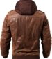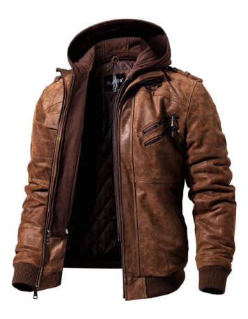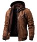 FLAVOR Men Brown Leather Motorcycle Jacket with Removable Hood